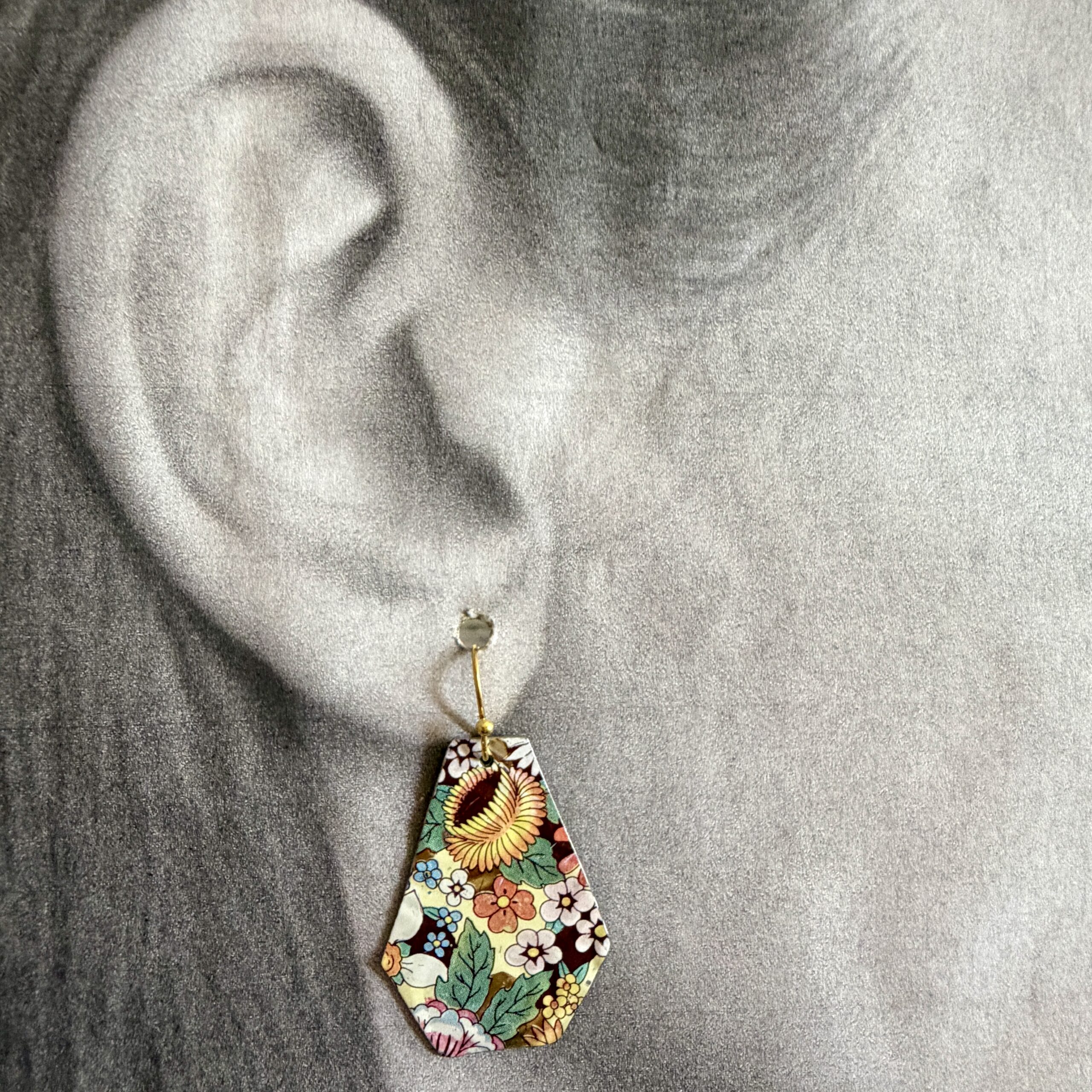 Vintage Tin Earrings – Flower Power Trapezoids